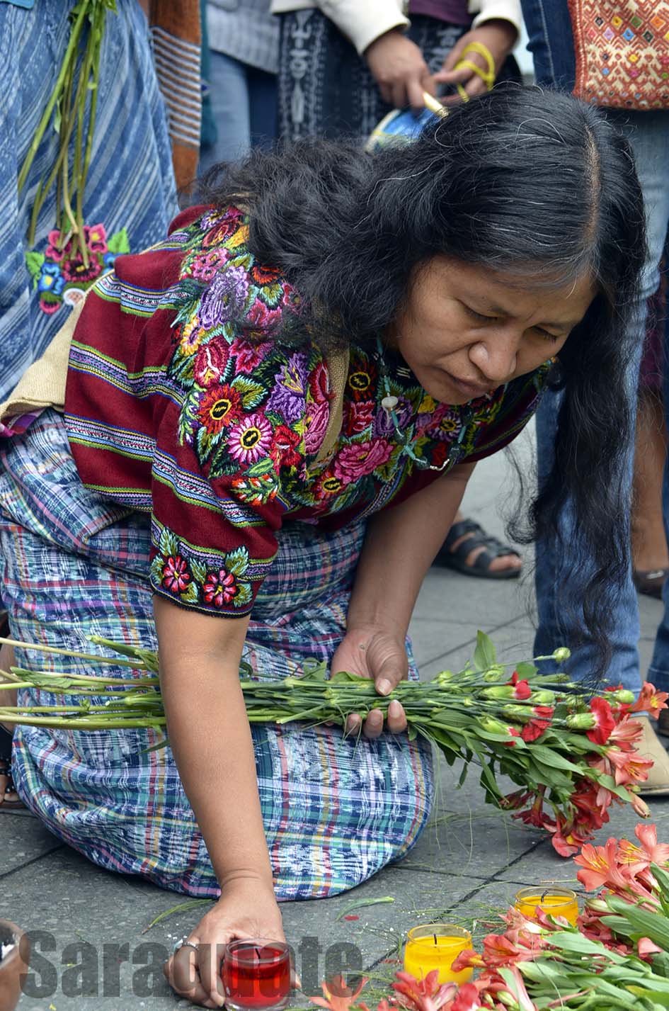 Guatemala, sábado 20 de abril 2013: Docenas de personas realizaron un acto político cultural frente a la Corte de Constitucionalidad -CC-, su objetivo es presionar para que los y las Magistradas ante esta Corte entren a resolver en la brevedad posible el recurso que entrampo el Juicio por Genocidio. Una ceremonia maya en la plaza de la CC, una batucada y consignas estuvieron presentes durante la larga jornada de medio dia ante la CC.